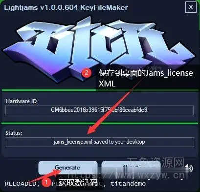 4.点击generate获取注册码,注册码 jams_license.xml 将直接显示在桌面,如图