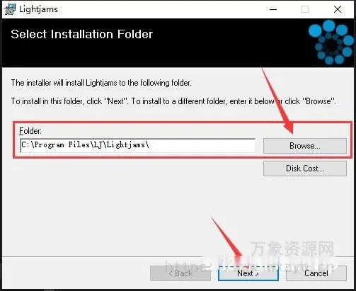 1.下载解压后,双击lightjams64.msi开始安装软件,点击browse更换软件安装目录,默认目录:C:Program FilesLJLightjams!如图