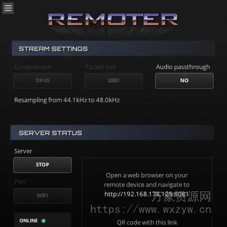 只需插入插件,启动服务器,扫描二维码即可在浏览器中打开支持的网络应用程序。然后按连接即可开始串流。