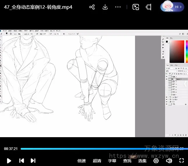 叮咛叮咛全身动态人物速写课2024【画质高清有课件笔刷】 - 万象资源网