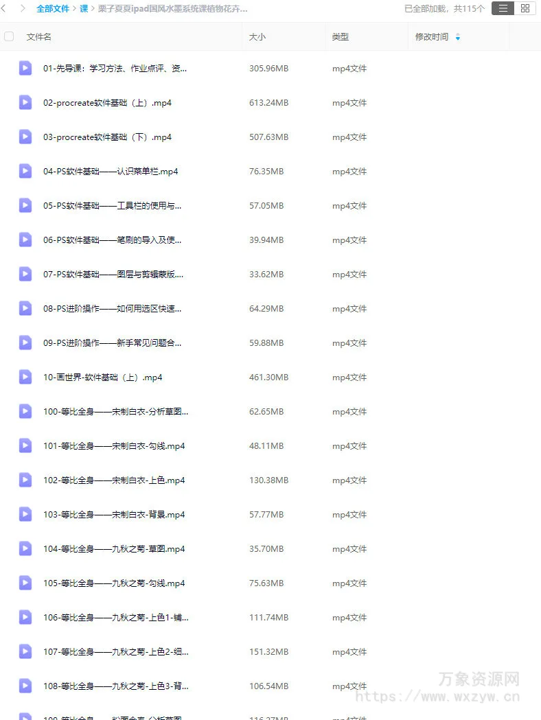栗子夏夏ipad国风水墨系统课植物花卉树木水果生活小物Q版人物场景【画质不错只有视频】