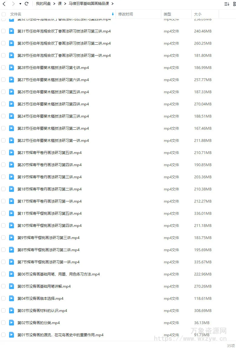 【说明】完整版一共40节课,中间缺了第12-第16国画扩展课,其他的都有