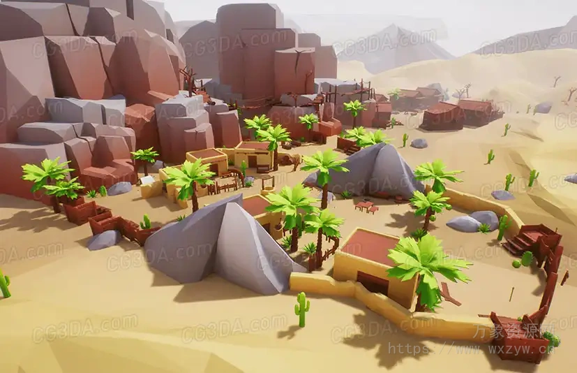 风格化沙漠城镇-Lowpoly Style Desert Pack