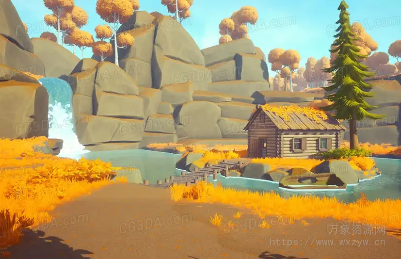 户外木屋-Stylized Autumn Forest