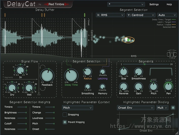 隆重推出 DelayCat,这是一款终极音频延迟插件,可用于创作新颖独特的纹理和基于延迟的效果。DelayCat 将延迟线与特征提取音频分析和串联合成技术(类似于粒子合成)相结合,让您探索声音处理的无限可能。