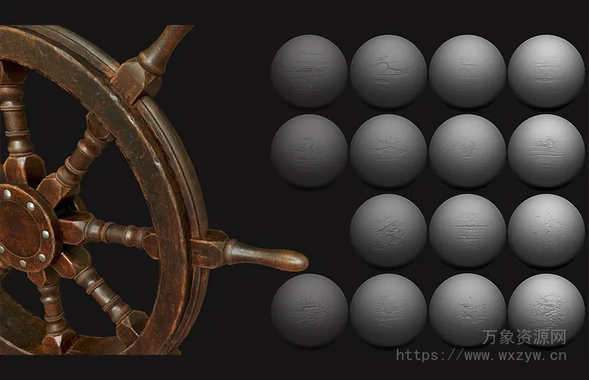 - 50 个 2k 分辨率的木质表面刷。