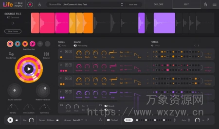 Life By XLN Audio 插件是所有节拍制作的核心。选择一个录音,Life by XLN Audio 会自动生成节拍。试听无尽的节拍变化,找到您最喜欢的意外惊喜,然后开始调整。使用声音变化和模式变化等功能调整节拍,或者通过编辑切片点、FX 或音序器更深入地了解细节。