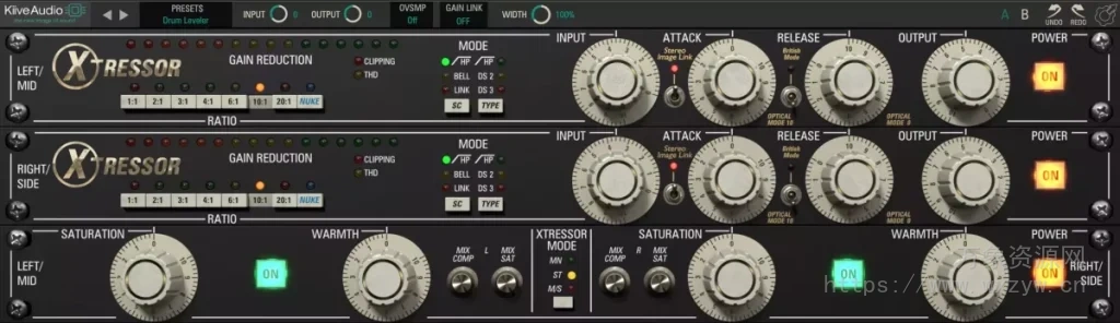 • 寻找快速而激烈的压缩?在任何 Xtressor 比率设置上尝试英国模式,为您的混音添加极端的冲击力和攻击力。