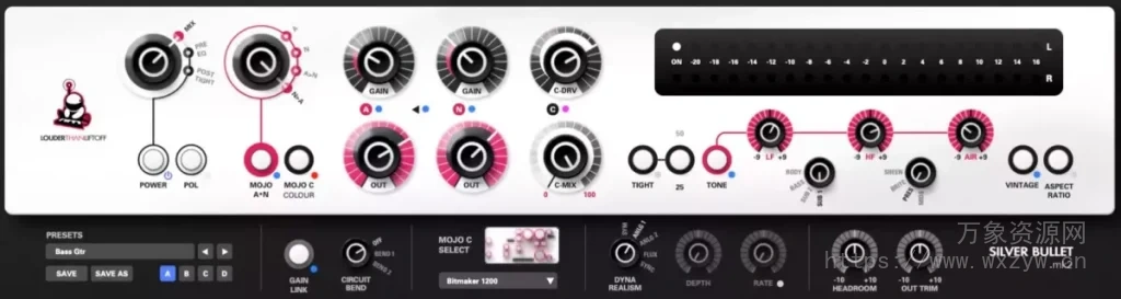 应用独特的盒内效果组合来塑造您的音轨、总线和立体声混音。将您的混音提升到一个新的水平,通常只有在拥有大量模拟录音控制台和大量外置设备的工作室中才能找到。通过三个数字 MOJO 放大器的级联组合处理您的 2 总线、组或音轨,这些放大器是根据原始 SILVER BULLET mk2 硬件的电路精心建模的: