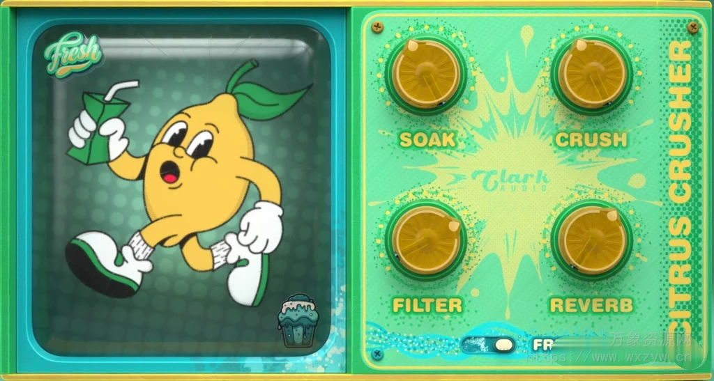 “Citrus Crusher”这个名字是为了向那个时代流行的软件 Limewire™ 致敬。LimeWire™ 是一个点对点文件共享网站,允许用户免费下载和在线共享内容,通常是低质量的 MP3 版本的歌曲。无论是人声、旋律还是录音,您都可以使用 Citrus Crusher 为您的听众带来 21 世纪早期降级 MP3 的怀旧、低保真、低质量的感觉。
