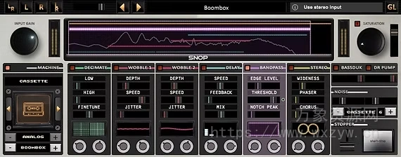 SNOP 的模拟设备通过无数非线性处理步骤复制了磁带、VHS 和唱片等介质的独特缺陷。这些包括哇音、颤动、偏差、方位角偏移、相位误差、噪音、滤波器、丢失、磁带饱和、立体声成像和自定义脉冲响应,所有这些都捕捉了每台机器的真实特性。