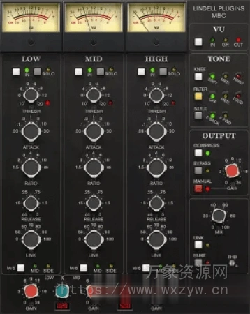 随着 SBC 的发布,Lindell Audio 提供了对原始 API® 2500 压缩器的精确仿真,这是有史以来最受欢迎的立体声总线压缩器之一。现在,新的 MBC 将这款标志性的模拟总线压缩器带入了多频段领域。