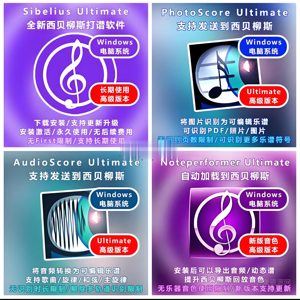 包含内容:可以选择性安装,支持加载到西贝柳斯。详细介绍点击了解。