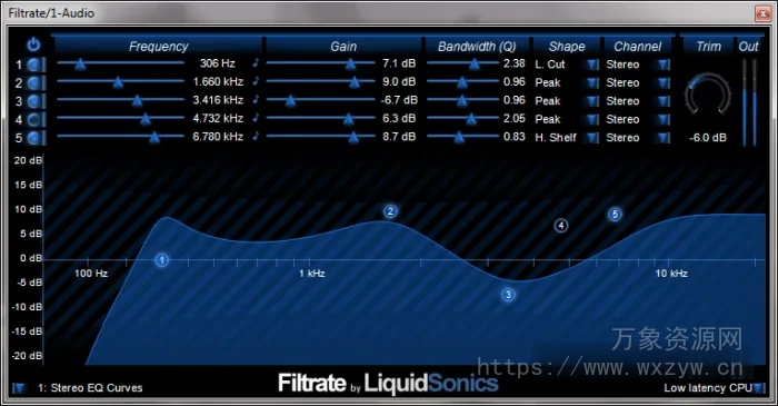 Filtrate 是一种高效的线性相位 8 频段立体声参量音频均衡器。